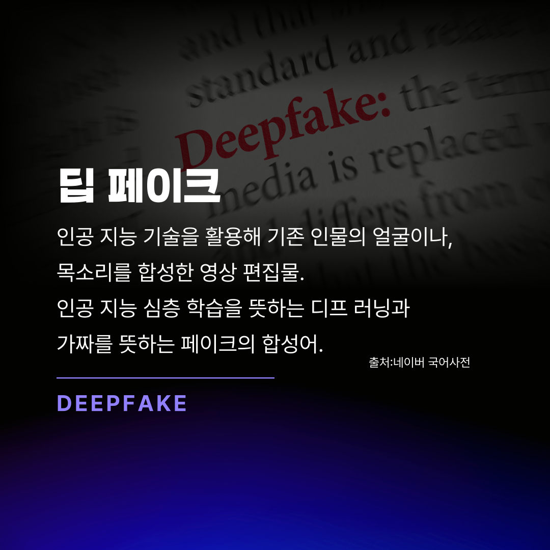 즉, 딥페이크는 인공지능을 통해 '가짜' 영상을 만들어내는 기술인 것이죠.
