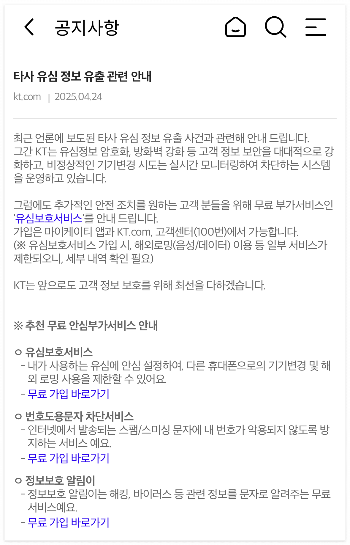 아직 가입 안 하셨다면 지금 바로 KT 고객센터 앱이나 웹에서 신청해보세요.